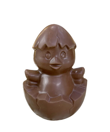 Lapin Caliméro en chocolat au lait, garni de fritures au chocolat lait et noir - 110g.
