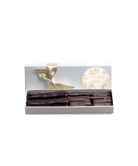Les écorces d’orange ou de citron sont coupées en lamelles fines, confites, égouttées puis enrobées de chocolat noir. Un produit emblématique de La Meringaie : moelleux et parfum des écorces, alliés au chocolat, à sa légère amertume.