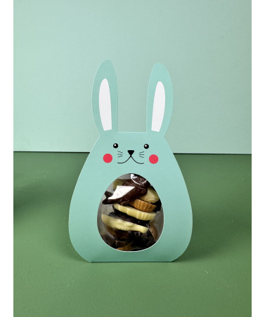 Pâques, le temps des enfants, de la chasse aux oeufs dans le jardin, des souvenirs d'enfance avec du chocolat plein les doigts. Et les sachets de friture se déguisent en lapin, vache ou poule, pour être cachés dans le jardin.