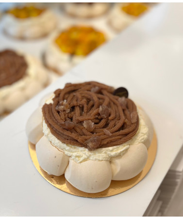 Nom masculin : désigne un dessert incroyable associant meringue, crème fouettée et crème de marrons, petite montagne de gourmandise en référence à une grande, très grande montagne. Forcément, nous avons créé notre version à La Meringaie.