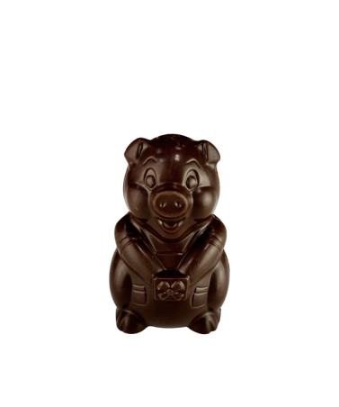 Cochon en chocolat noir garni de friture chocolat au lait - 60g.