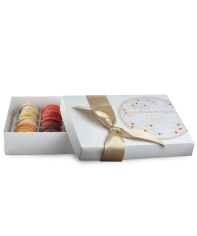 Sugar, icing sugar, almond powder, egg white, dried egg white (egg white, xanthan gum, foaming agent citric acid, E1505), corn starch, whole milk, cream, cocoa butter, cocoa bean butter, egg yolk, lime juice and zest, almond, raspberry puree, passion fruit puree, Valrhona white chocolate (sugar, cocoa butter, milk, emulsifier: soy lecithin, natural vanilla extract), milk chocolate (cocoa butter, whole milk powder, cocoa bean sugar, brown sugar, natural extract, emulsifier: soy lecithin, barley malt extract), dark chocolate, honey, lemon, hazelnut, vanilla bean (0.21%), homemade caramel (7.3%), powdered chicory, fleur de sel, cocoa nibs (3.13%), pistachio paste (3.95%), redcurrant puree, water, orange juice, pure grapefruit juice, Timur berry, apricot puree, lemon juice and zest, rosemary, strawberry, basil, pasteurized liquid egg white, blanched almond powder, pure Caribbean grand cru chocolate 66% cocoa and extra dark chocolate 67% cocoa (12%), fleurette cream