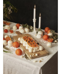 Meringue, whipped cream with nougat, fresh clementine, clementine compote, candied clementine