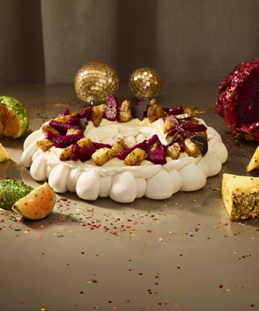 The Yseult pavlova crown: whipped cream, kalamansi cream, roasted pineapple with Madagascar vanilla, and dragon fruit.